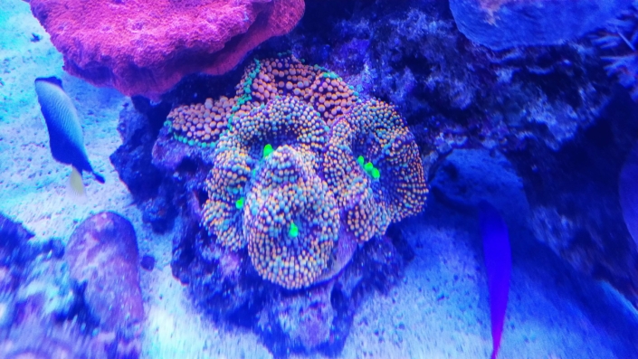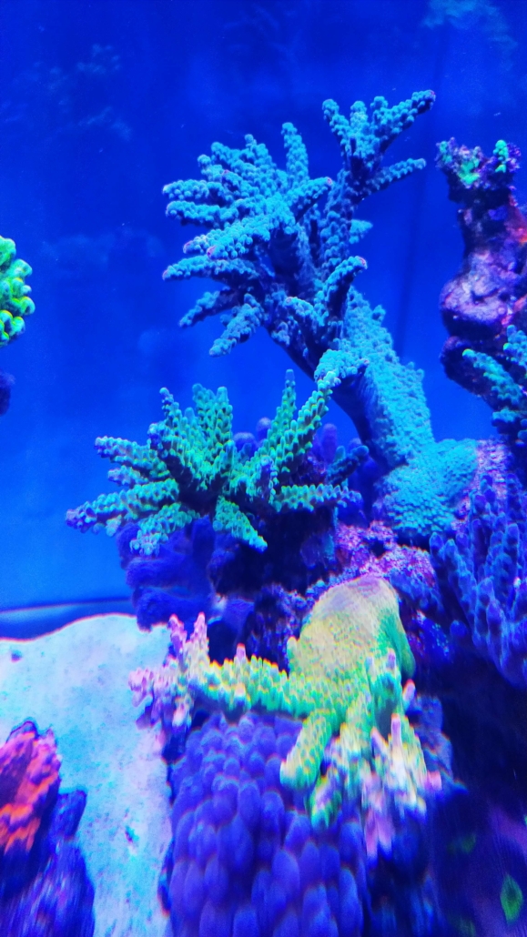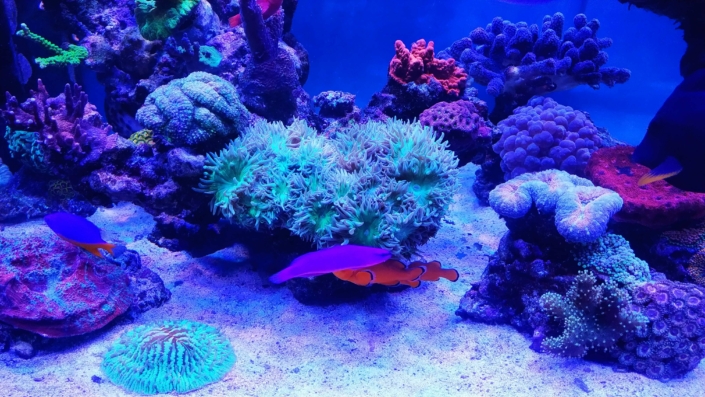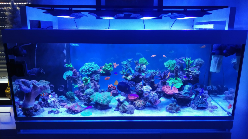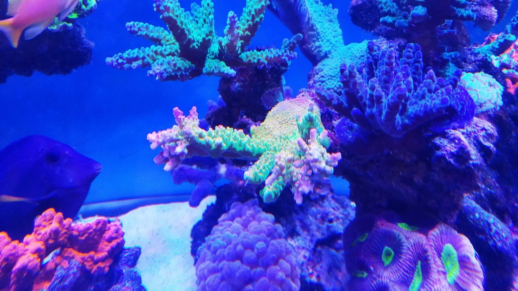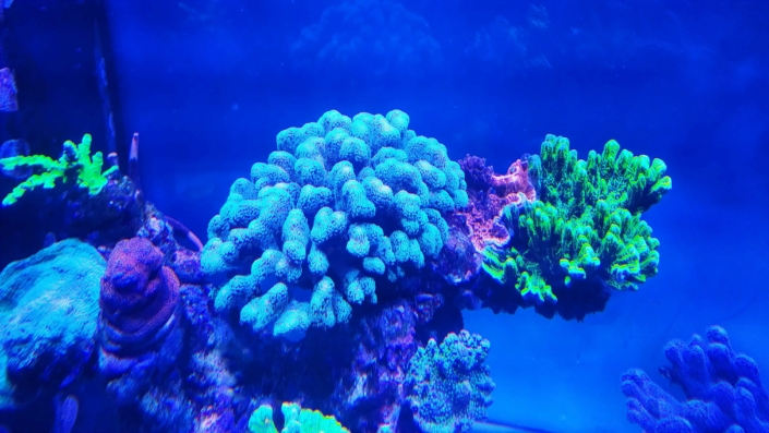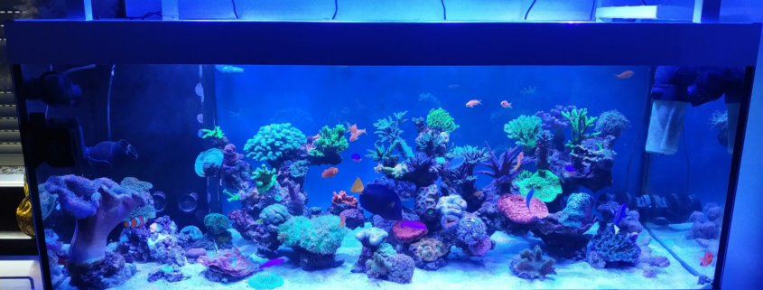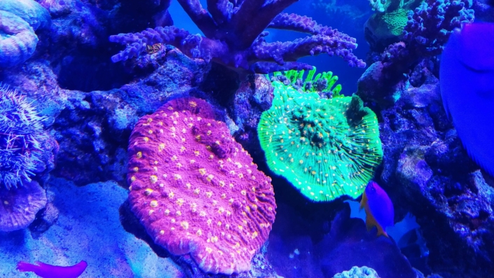 Korallen: ca. 70 % SPS, 20 % LPS, 10 % Weichkorallen.