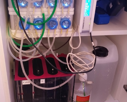 Zugabe der Lösungen mehrmals am Tage mittels der GHL Dosierpumpen